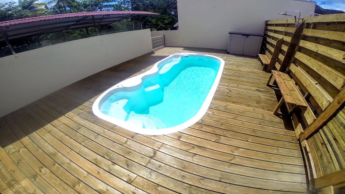 LA MAISON MAHI MAHI La maison Mahi Mahi est une location de vacances neuve, de standing et décorée avec goût. Sa superficie est de 77m2 + une grande terrasse avec piscine dans une nouvelle résidence privée, à 800 mètres de la plage et des commerces de l’Anse-à-l'Âne aux Trois Ilets. Au rez-de-chaussée se trouve une entrée privée, la cuisine très bien équipée avec son bar s’ouvrant sur le grand salon / espace TV ainsi que sur la terrasse aménagée.