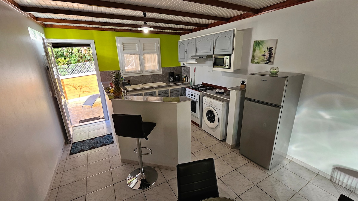 Experience exceptional moments in a fabulous one-bedroom apartment (64m²) located in a luxurious, secure residence just 5 minutes from the capital, Fort-de-France, where you'll be lulled by the waves and amazed by the magnificent sunsets. Access to nearby beaches, restaurants, a supermarket, a casino, and a diving center are all within 3 minutes. High-quality amenities: queen-size bed, air conditioning, a fully equipped kitchen, masks/snorkels available, and secure parking.