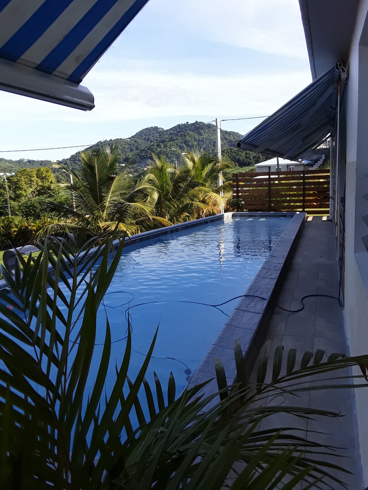 Le gîte Pitaya est un agréable F3, comportant 2 chambres climatisées, 1 salon avec banquette-lit , 1 cuisine américaine ouverte sur une première terrasse abritant une spacieuse salle à manger extérieure . La deuxième terrasse , elle, à ciel ouvert est ouverte sur le jardin, et comporte chaises longues et jacuzzi en accès privé. Nos vacanciers apprécieront l'espace, la tranquillité de ce F3 tout équipé et confortable, avec accès gratuit au WIFI et à une machine à laver.