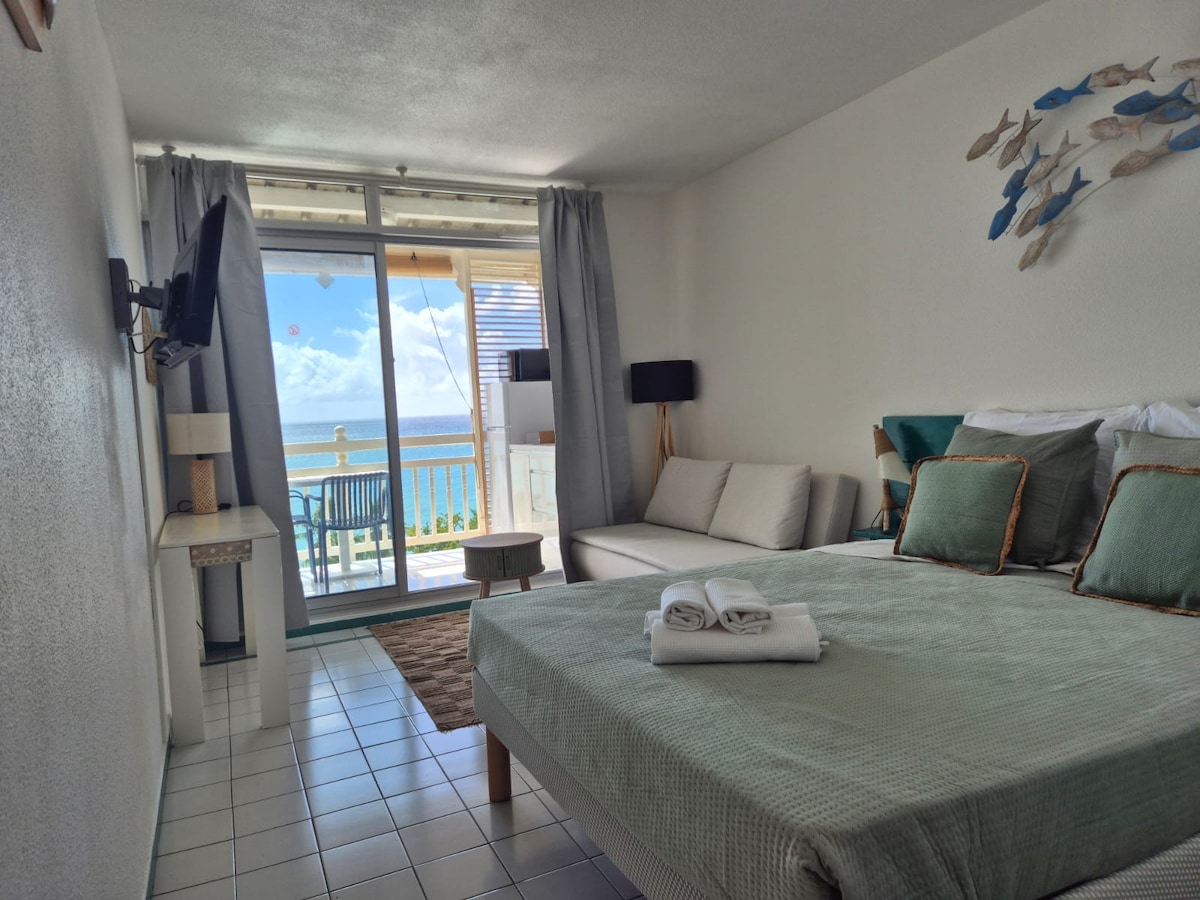 Magnifique studio, idéalement situé dans une villa récente avec environnement calme, verdoyant à proximité de toutes commodités : 200m de la plages, commerces, restaurants et non loin du petit marché bien achalandé de fruits et légumes locaux. Vous apprécierez de prendre vos repas sur la terrasse spacieuse face à la mer, en admirant le Rocher du Diamant, le Morne Larcher et l'île anglophone de Sainte Lucie.