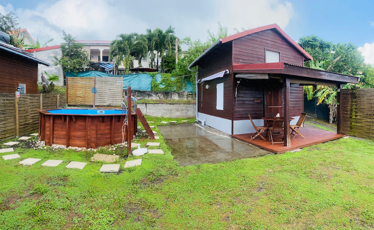 Bungalow pour 2 personnes, 1 lit de 140, salle de bain, kitchenette, située sur une propriété privée avec jardin. Vous profiterez pleinement de la piscine (8mx3m), du parking, car ce logement est complètement individuel. Internet wifi Portail électrique sécurisé Barbecue Carbet avec 2 hamacs Possibilité de vous faire livrer tous les matins du pain, viennoiserie, pâtisserie par le boulanger du coin, tarif préférentiel et livraison gratuite pour les voyageurs.