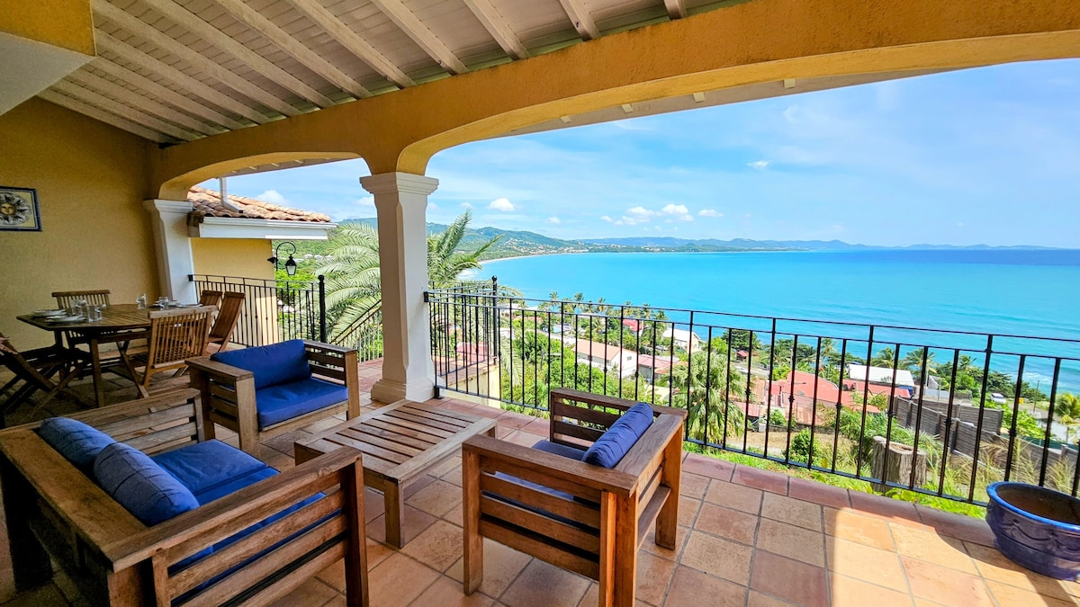 Magnifique vue sur la mer des Caraïbes ! Très belle villa, calme et reposante, située dans une résidence dès plus prisées, qui surplombe la grande baie. Les réveils sont lumineux et les couchers de soleil sont à couper le souffle. Le premier bain de mer à 4 mn en voiture. La villa est aménagée avec goût, des matériaux de qualité et totalement équipée. Piscine au sel. Jardin. BBQ. Localisation idéale pour rayonner partout sur l'île. Parking privé sécurisé pour 2 voitures. Supermarché à 5 minutes.