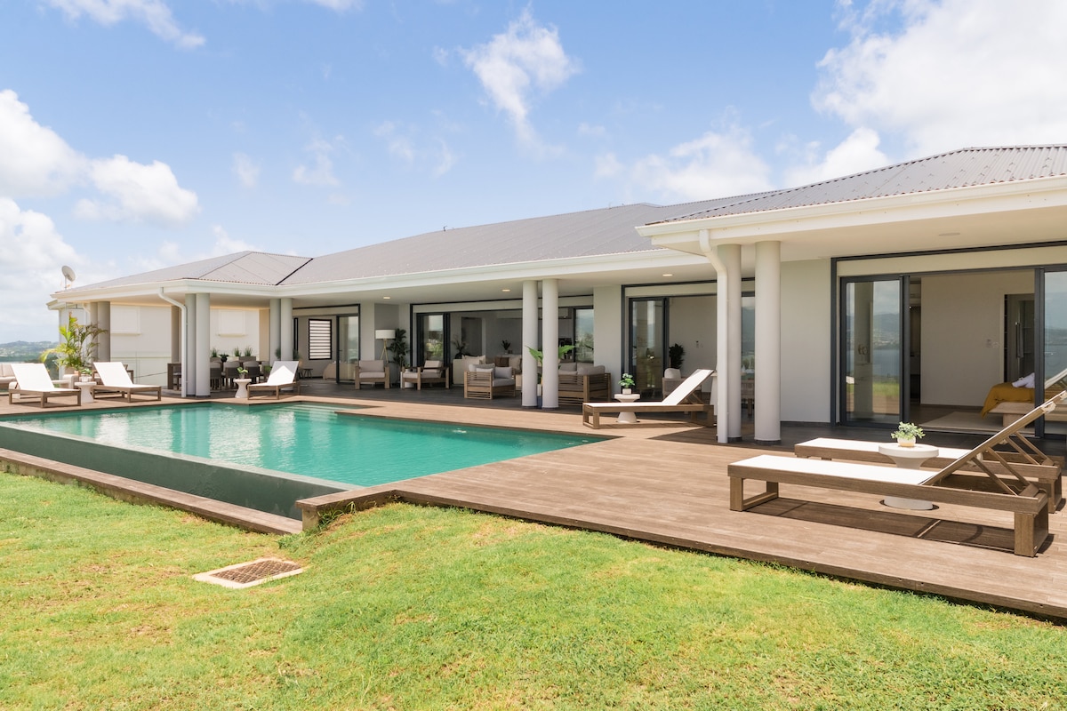 La villa Amara 3 est une villa luxueuse toute neuve et très spacieuse. Située en haut d'une colline dans le Domaine d'Amara, la vue à 180° sur la mer des Caraïbes y est incroyable. La villa construite en 2025 est très grande (500m2) avec une immense terrasse de 200m2 et une piscine à débordement de 11m x 4m d'où l'on peut voir chaque soir le coucher de soleil sur la mer ! La villa meublée avec goût, moderne et fonctionnelle, comprend 4 grandes chambres, chacune avec salle de bain privée.