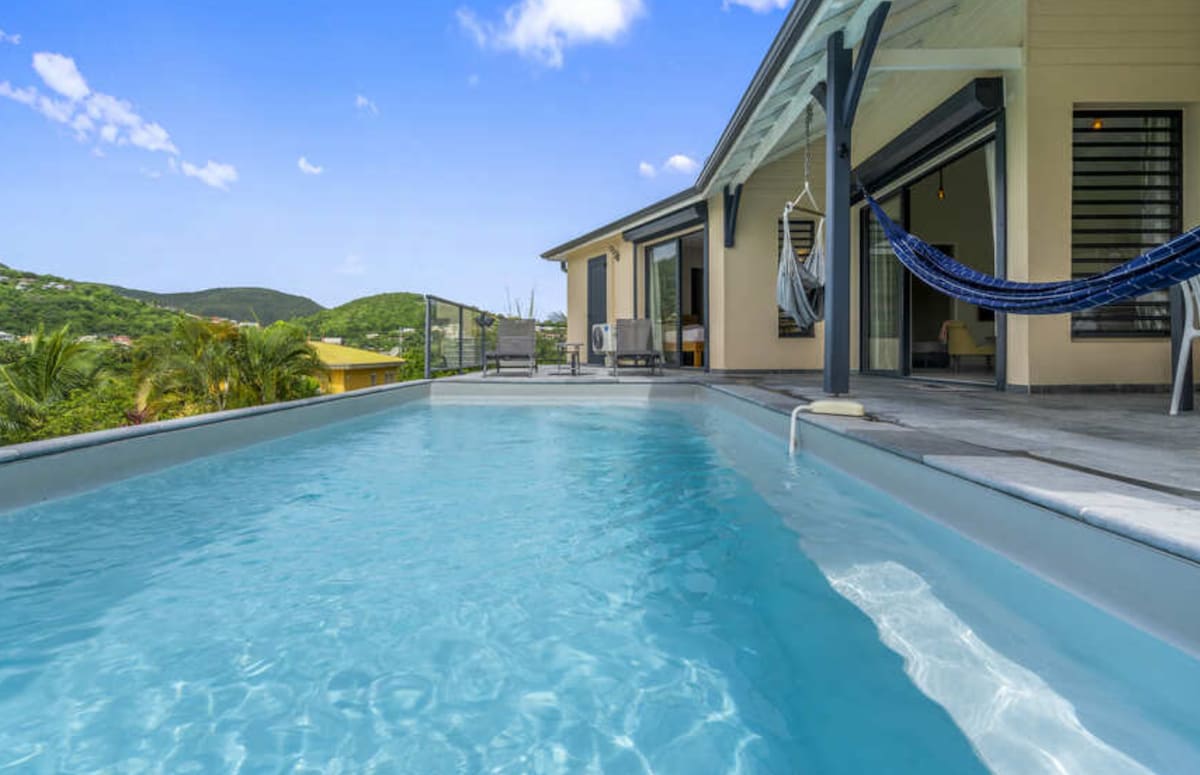 Magnifique vue sur la mer des Caraïbes ! Très belle villa, calme et reposante, située dans une résidence dès plus prisées, qui surplombe la grande baie. Les réveils sont lumineux et les couchers de soleil sont à couper le souffle. Le premier bain de mer à 4 mn en voiture. La villa est aménagée avec goût, des matériaux de qualité et totalement équipée. Piscine au sel. Jardin. BBQ. Localisation idéale pour rayonner partout sur l'île. Parking privé sécurisé pour 2 voitures. Supermarché à 5 minutes.