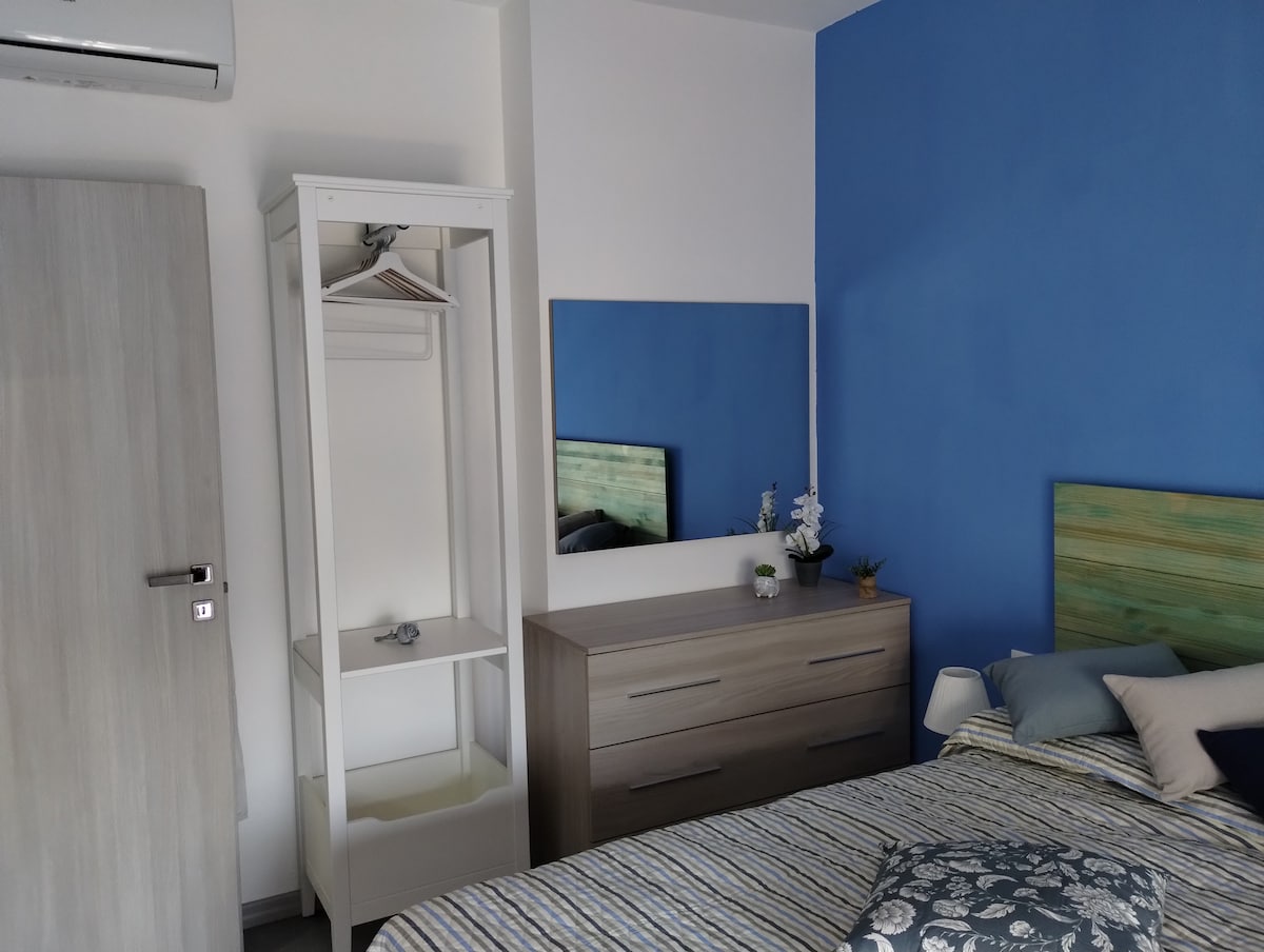 Lussuoso appartamento situato a soli 30 metri dalla spiaggia, consigliato per un’occupazione ideale di 2 adulti e 2 bambini per garantire il massimo comfort durante il soggiorno. L'alloggio dispone di: - terrazzo con vista mare, arredato con salottino e tavolo da pranzo; - camera matrimoniale con bagno privato, soggiorno con divano letto (nel soggiorno non sono presenti le tapparelle); - 2 smart TV, WI-FI e aria condizionata in ogni ambiente, macchina del caffè; - 1 posto auto.
