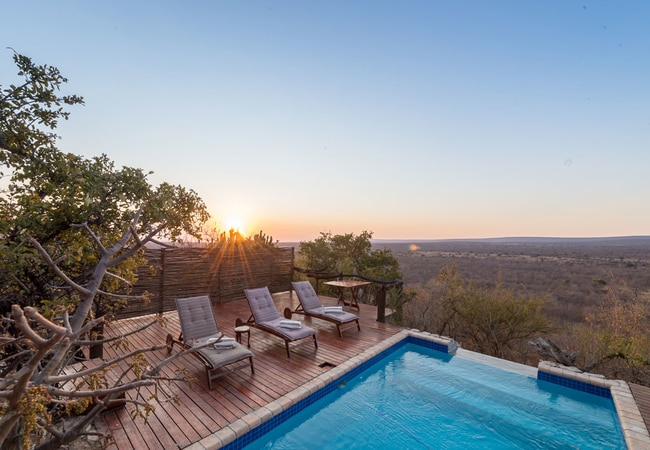 This private chalet has a thatch roof, a lovely walk-in shower and separate bath. The private patio looks out over the bushveld where animals roam freely. The room offers a king-size bed, coffee and tea facilities and a fridge. Outside you will find a private splash pool and braai area