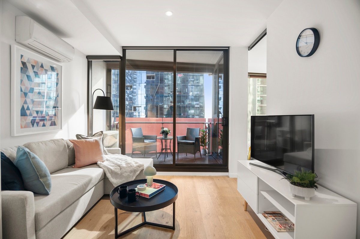 Discover a chic, fully furnished one bedroom apartment featuring floor to ceiling windows, airy and stylish space located in one of the most central spots in Melbourne. Great attention has gone into the home’s design to give you no better place to relax after a day in the city. Wake up and smell the coffee with some of Melbourne’s best laneway cafe & eateries literally at your doorstep. Situated 5 min walk from the heart of Bourke st. Mall, Hardware Lane, China Town, and Collins st. Shopping