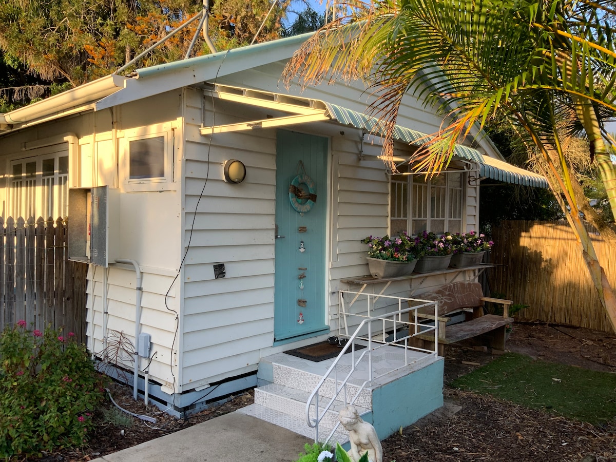 1 bedroom 1930's private cottage, modernised for comfort! Easy stroll to beach, Pier, Cafes, Pub, Supermarket and Marina. A/C, Frig/freezer, Microwave/ Air fryer, Dishwasher, Pod coffee, machine, Washing Machine & Dryer, 2 x TV’s (Bedroom 42” and lounge 75” ) NBN WiFi, Netflix. WORK: Electric SIT/STAND DESK! Private BBQ area and garden. POOL (shared) Fur (under 15 kg) babies welcome - secure. 2 Bikes/helmets available on request. Note: we live in main house with 2 small dogs.