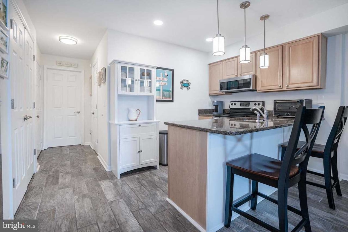 Stunning beachfront condo with direct view of the ocean! Your vacation home away from home! Everything you need right ON the beach. All linens, supplies and a well-stocked kitchen! New 65" TV w/free 4K Netflix provided! Modern serene decor in the heart of OC! Feel like getting out? Enjoy walking distance to Seacrets, Mackey's, and Fager's Island, Subway, Candy Kitchen or Dumsers' Dairyland! More adventure? Walk to minigolf, pontoon boats and jetski rentals! Only 4 minute drive to the boardwalk!!