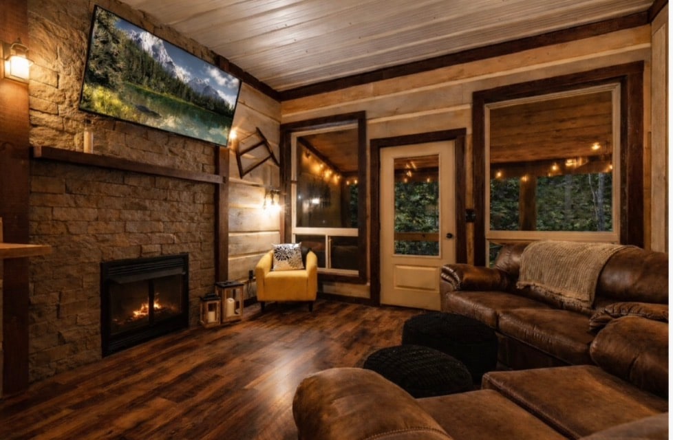 The Chalet in the Orchard was designed with Romance, Luxury, and Relaxation in Mind. The Chalet offers many first class amenties to Enjoy with your Partner. * Movie Theater with Surround Sound * Tonal Digital Home Gym * Dedicated Work Space * Fast Wifi * Sauna * Hot tub * Outdoor TV * Gas and Wood Burning Fire Pit * Private outdoor Seating * Large Soaking Bathtub * Luxury Stone tile Shower * Heated Tile Bathroom Floors * Full Kitchen * Breville Espresso Machine * King Bed