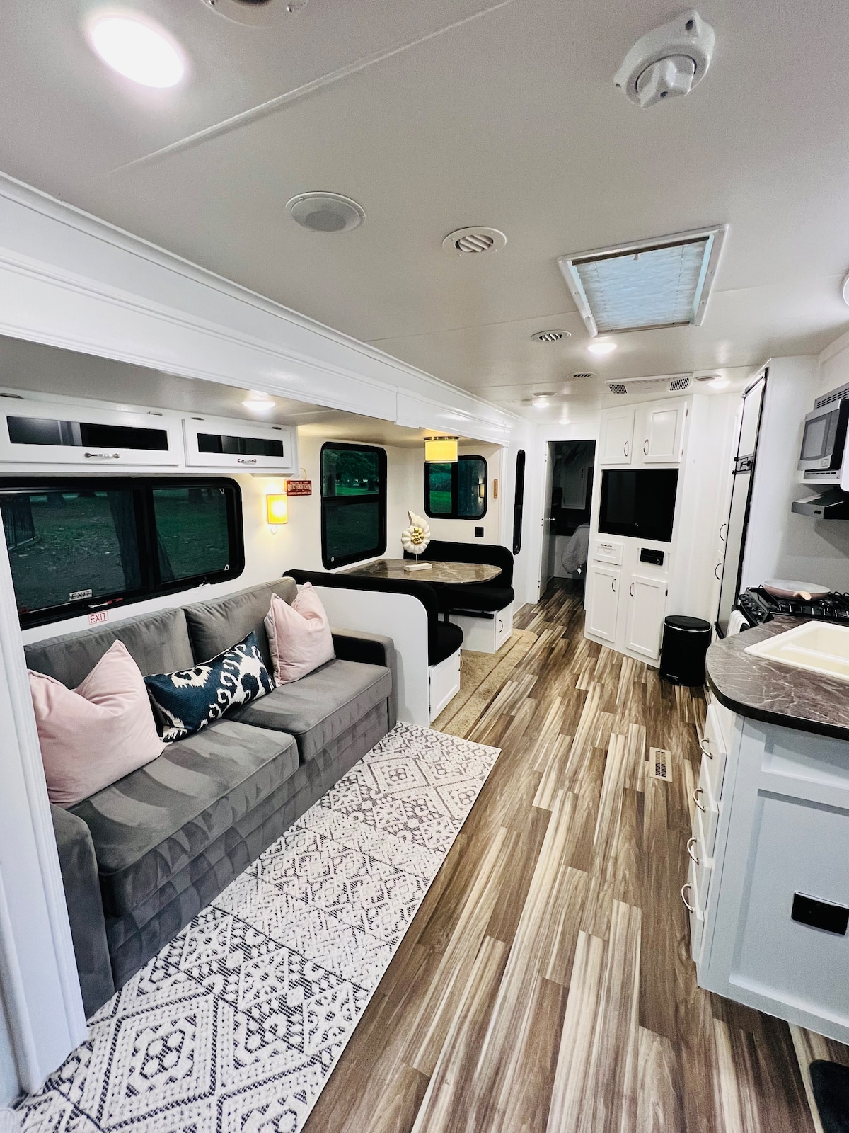 Just outside the buzz of D.C., a hideaway offers a peaceful, romantic retreat in the heart of Lanham. Surrounded by the natural beauty of Prince George's County, this cozy RV features a large full+full sofa bed, a full bed, soft lighting, and windows for golden sunset views. Enjoy intimate meals in the charming kitchenette, then unwind in your outdoor space. Whether you're stargazing or exploring nearby Lake Artemisia, this is the perfect spot to relax and make lasting memories.