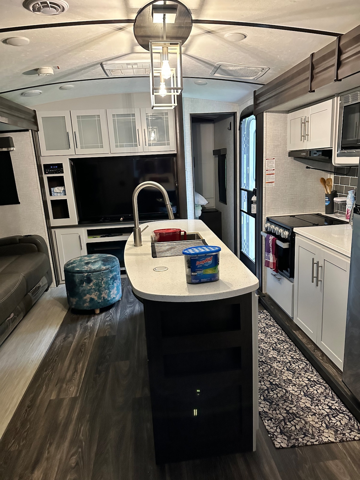 38 foot Fifth Wheel RV located at marina. Fully equipped kitchen, 1 bath and 1 bedroom with comfy King bed. Living space includes dinette with 4 chairs, sofa w/ full size air mattress and two recliners set up in front of a 42" flat screen TV. Heat and air provide the perfect accommodations no matter the weather. Enjoy sitting by the fire pit or explore the Bay on one of our two Kayaks. A stone's throw from Trade Point Atlantic, Key Bridge work site. Just 15-20 minutes to downtown Baltimore.