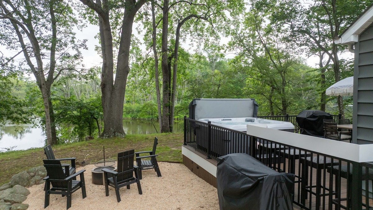 Tranquil lodge nestled on 3 wooded acres in Myersville, MD. Relax by the heated pool, enjoy the warmth of the fire pit, or receive a massage in the studio. Minutes away from downtown Frederick and Middletown restaurants, shops, and parks. Visit the local wineries and festivals. Tour historic battlefields. Go antiquing. Take in a round of golf, bike the C&O canal, hike the Appalachian trail, boat on the Potomac River, or go skiing. Bring your fur baby with you to enjoy the activities!