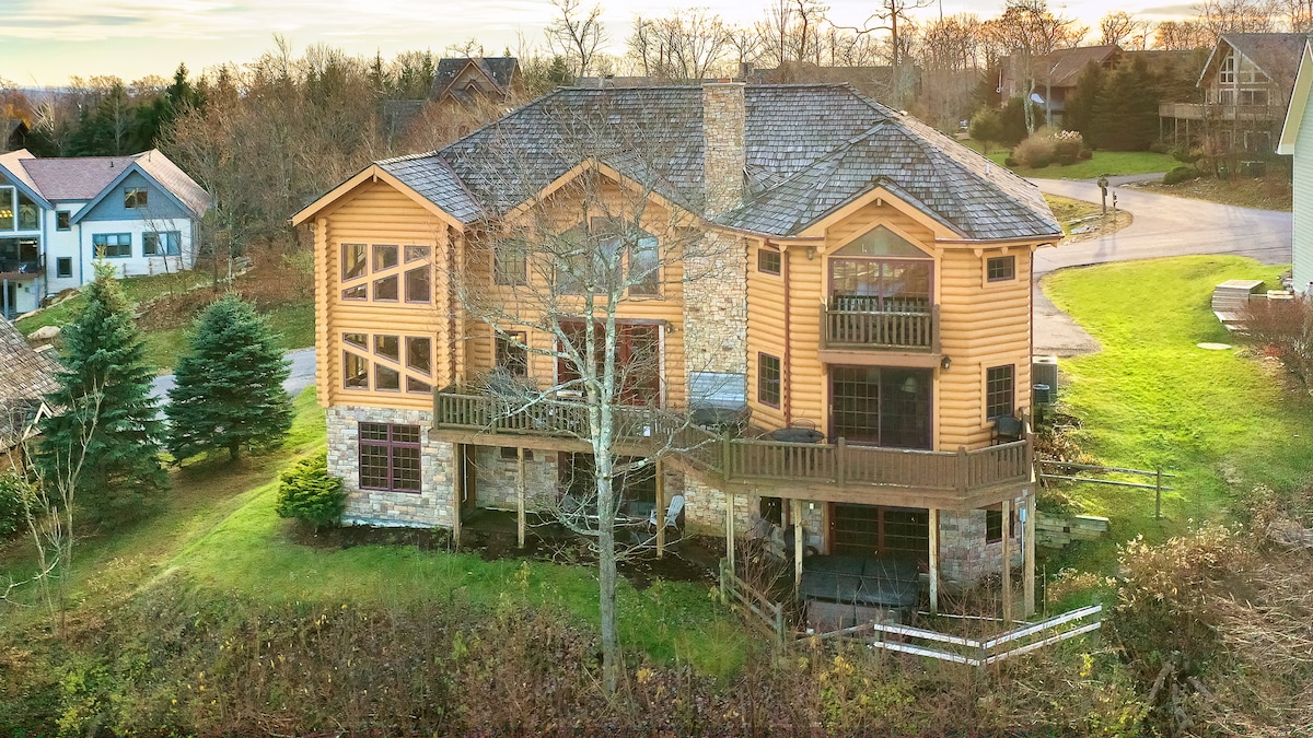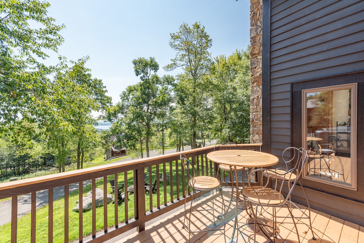 Relax in our mountaintop chalet with a cozy atmosphere, outdoor living space, and a saltwater hot tub. Located in the Highline Subdivision on Wisp Mountain this chalet is close to Deep Creek Lake amenities, Wisp Resort, and ASCI. Only steps away from the ski-access and a golf cart ride away from lodestone golf course.