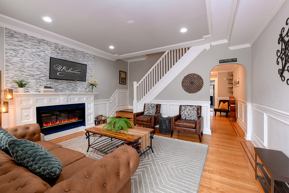 Literally located steps away from the waterfront in Historic Fells Point, Baltimore City, Maryland. Walking distance to all that Fells Point has to offer - to include restaurants, shops, stores, bars, family gathering areas, and water taxis to other desired waterfront locations in Baltimore City. Home is fully loaded & has a rooftop desk with a wonderful view of the Fells Point Waterfront, state-of-the-art appliances, TVs in multiple rooms, incredible ambiance, and great comfort.