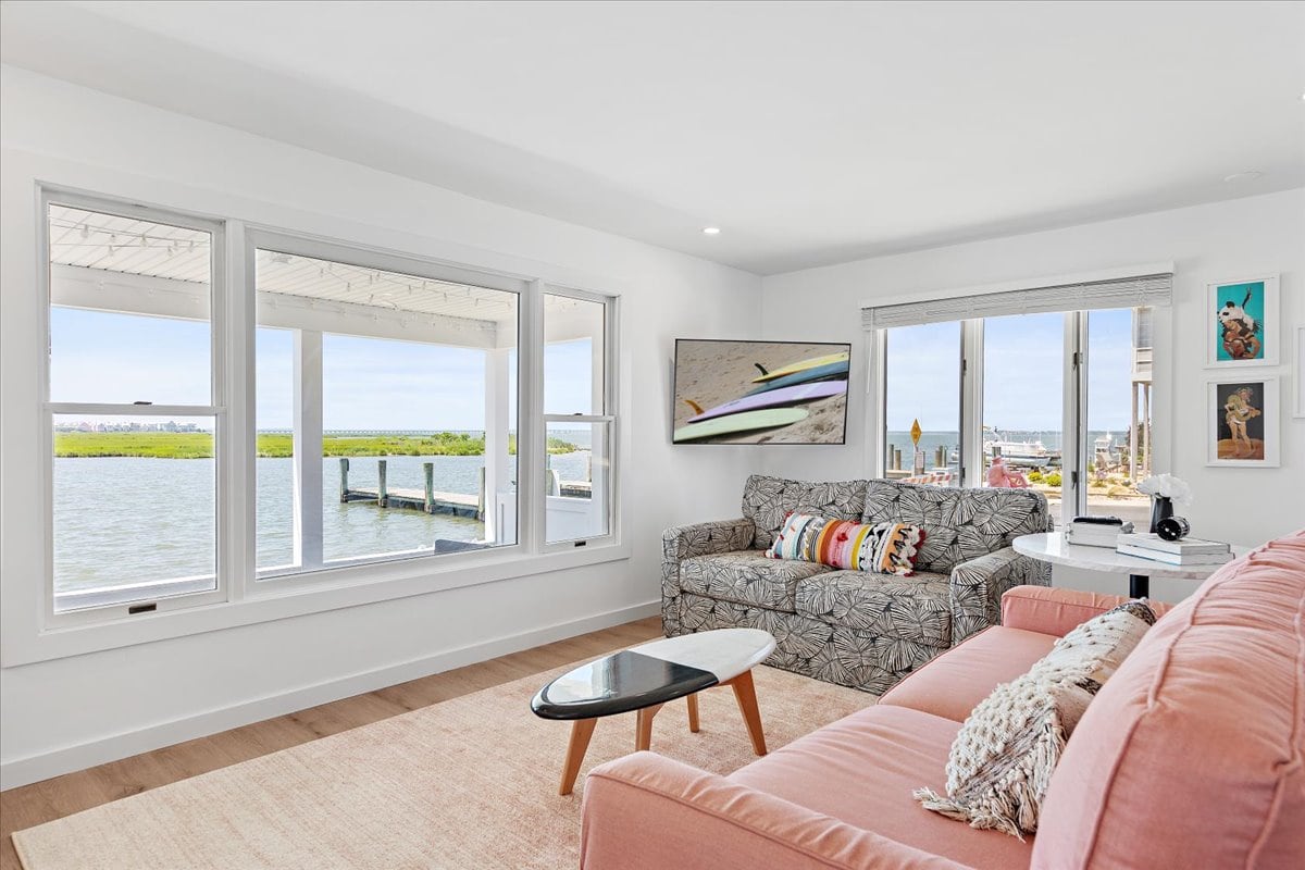 Water, water, everywhere! Enjoy views of the bay from every window in the house, including the huge waterfront deck & private covered porch. The house is recently renovated & professionally designed with unique & custom features throughout celebrating the local art & surfing culture. From colorful spray paint on the exterior to vintage finds in the interior, the Boat Ramp House is truly one of OC's most unique & exciting homes! Weekly rental from Sunday-Sunday. Linens are NOT included.