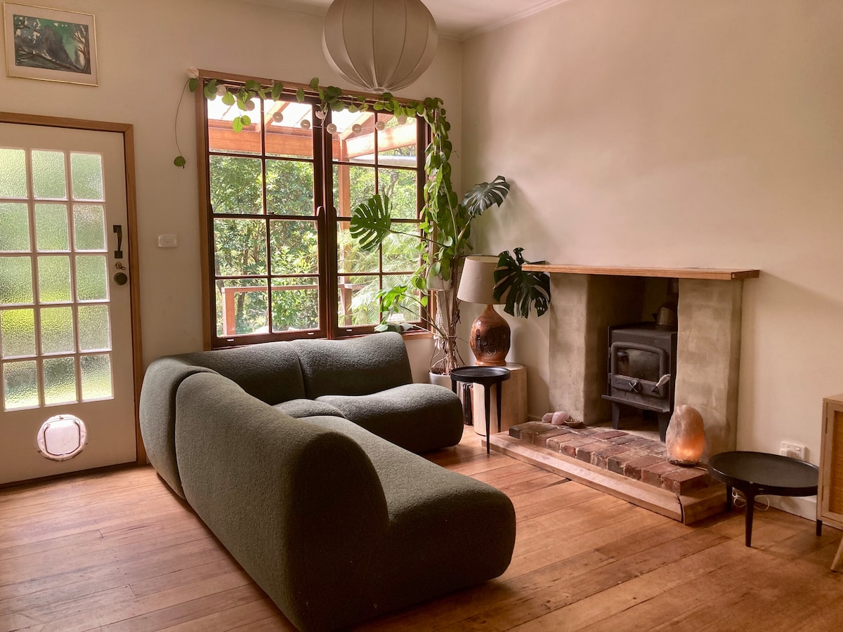Set amongst the forest of Mt.BawBaw, guests discover the serenity of our natural landscape. Enjoy a soundscape of birds, see a dazzling night sky, take long walks through the forest, visit our local waterfall and relax with people you cherish around our fireplace in a charming, rustic interior. We’ve got you sorted with bed linen, firewood, internet via satellite, 240v electricity via our solar system, birdseed for feeding the parrots and all the kitchen and bathroom essentials that you’ll need!