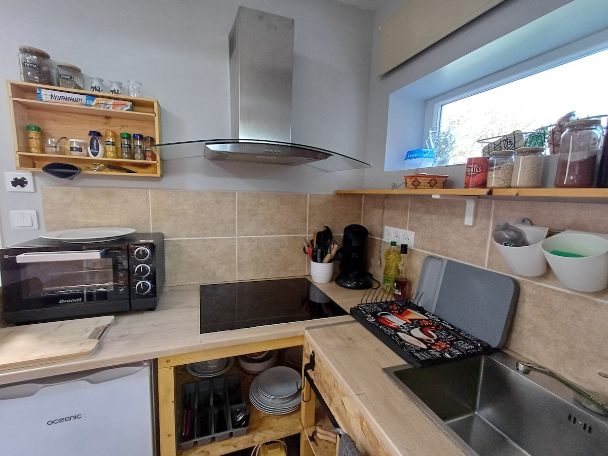 Studio rénové de 32 m2 au cœur du village avec une entrée indépendante et l'accès à une cour intérieur avec coin repas. Cuisine équipée, salle d'eau avec douche. Salon avec un coin nuit (lit en 140). Appartement non fumeur Le logement est proche à pieds des commerces : boulangerie, boucherie, supérette.. Le linge n'est pas fourni pour les séjours de plus de 15 jours. L'accès au logement nécessite de descendre quelques marches.