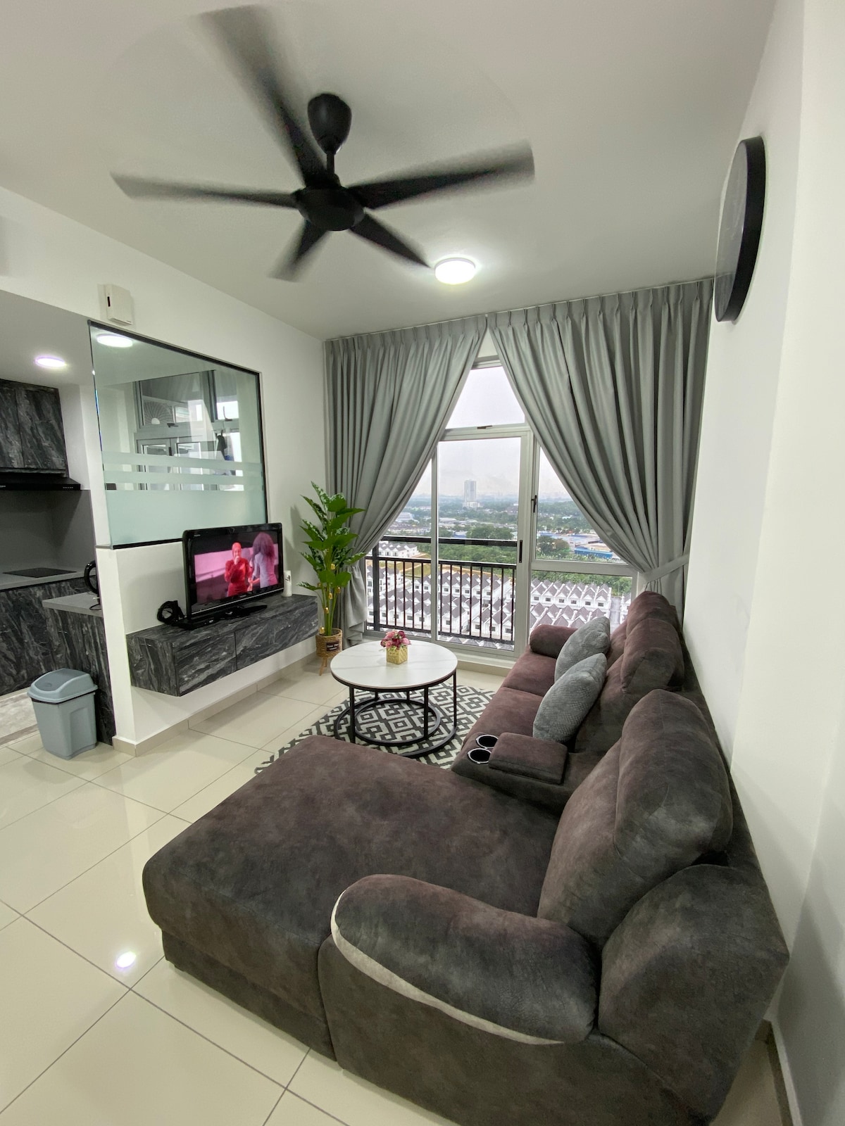 Escape to our stylish 2BR condo on the 33rd floor in Johor Bahru. This modern minimalist retreat offers stunning city skyline views and comfortably sleeps 6-7. Perfect for families or business travelers, it features an HD projector with Netflix, high-speed 5G Wi-Fi, and a well-equipped kitchen. Enjoy a unique urban getaway with resort-style amenities.