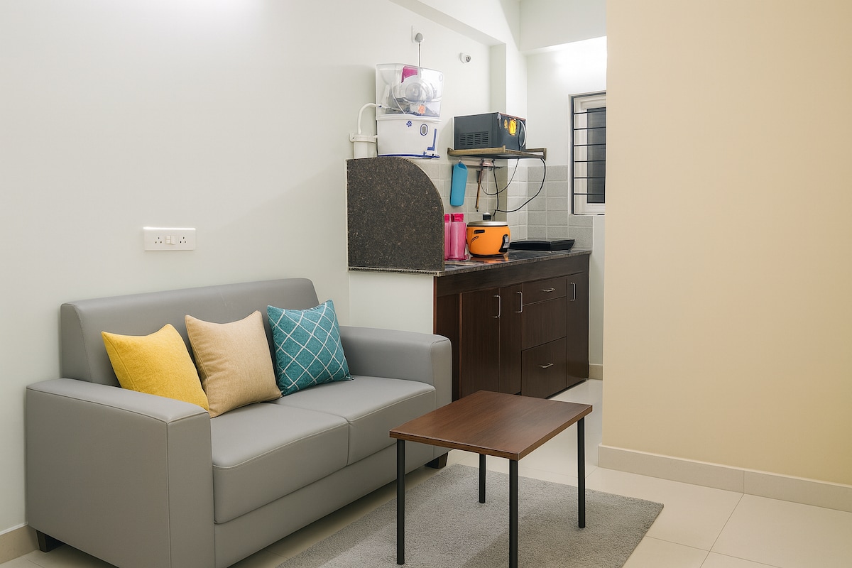 Enjoy a comfortable stay in this new 2BHK apartment. Bright, clean, AC bedrooms—perfect for families, NRIs, and business travellers. The home has a full kitchen with RO water, induction stove, basic utensils, smart rice cooker, fridge, kettle, high-speed Wi-Fi, geysers, inverter and covered parking. Relax with a RoboTouch premium massage chair and foot massager during your stay. Located just 15 minutes from ORR Exit 8, close to hospitals, supermarkets, and quick Swiggy/Zomato access.