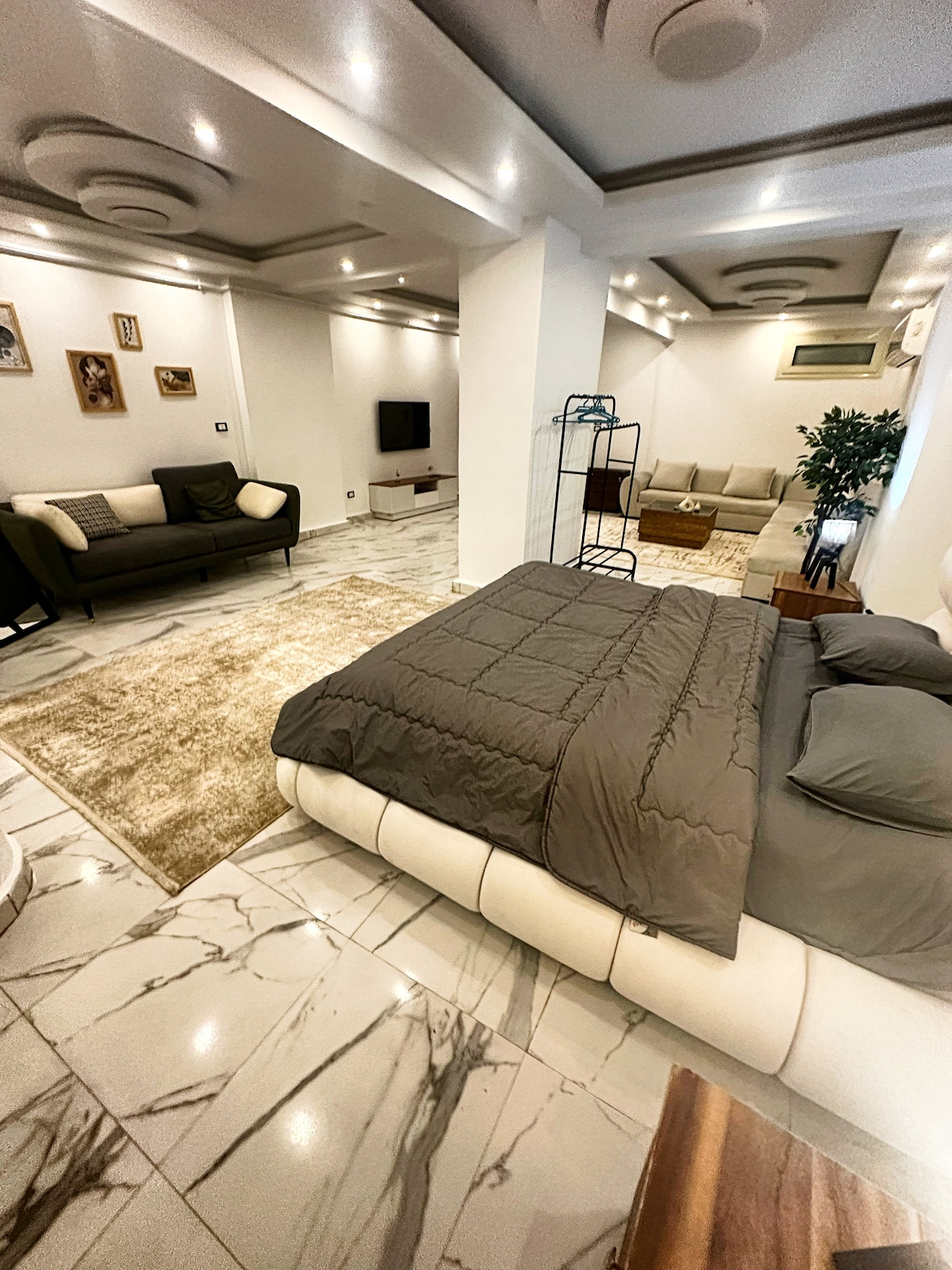 Welcome to your home away from home! Just minutes away from the airport. Our warm spot is adorned with modern comforts, surrounded by greenery, restaurants, supermarkets, kiosks (walking distance), and the most popular malls in Egypt nearby. Everything you need is right here. Your ideal stay awaits!