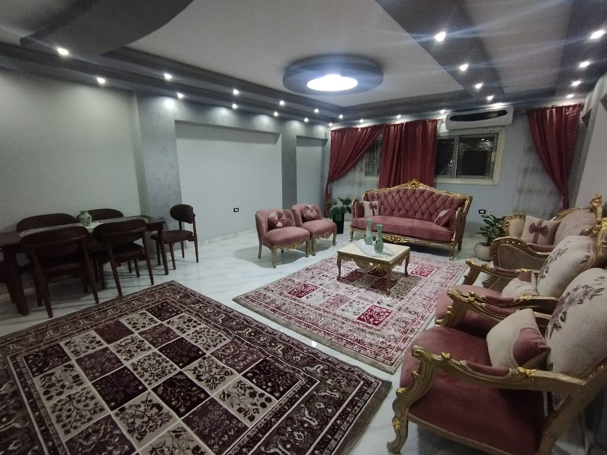 Bright Oasis near Cairo International Airport Located just minutes from the airport in one of Cairo's safest neighborhoods, this top-floor apartment offers peace of mind. While there's no elevator to the 4th floor, the climb is worth it for the stunning rooftop views and quiet ambiance. The apartment is fully equipped for your comfort, featuring a 4K smart TV with Netflix and Amazon Prime.