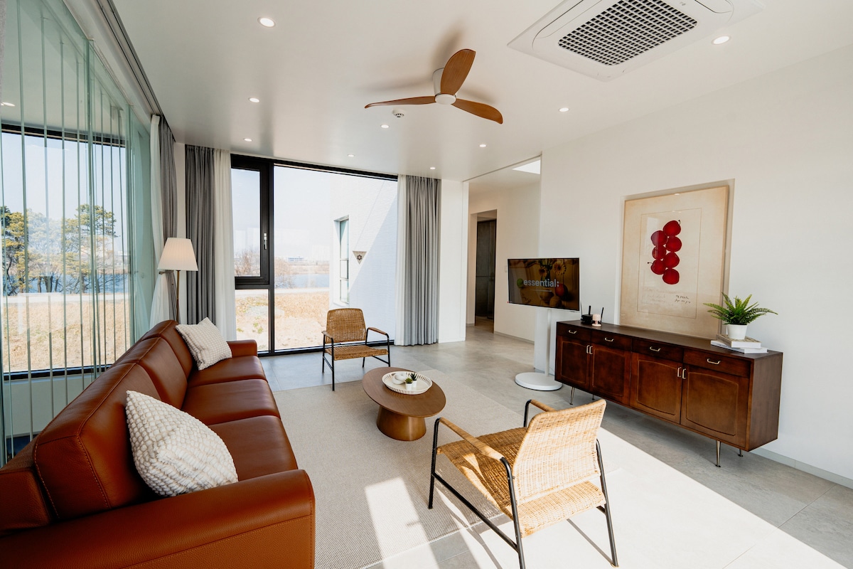 The river view with a view of the Nakdonggang River! Welcome to Riverside Jo. It's a place where you want to enjoy a quiet waterfront atmosphere In the yard, you can use a barbecue area where you can swim and swim. The interior of the accommodation is decorated in a neat style, In front of the yard, there is a waterfront park where you can walk, run, and cycle. Relieve your fatigue with special events such as social gatherings and workshops here