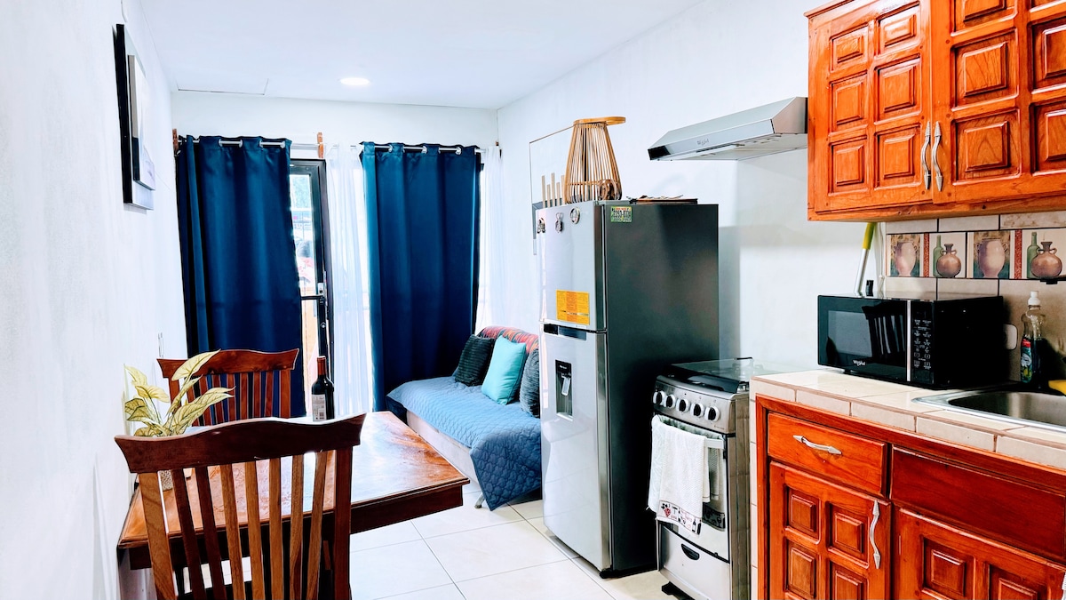 We are officially open! We would like to welcome you to a hospitable, quaint, and warm space we have built for our guests. We are conveniently located 5 minutes from the International Airport, in a safe and clean community. The community is in walking distance to market stores, pharmacy, bakeries, and restaurants. We look forward to hosting you. ¡Estamos oficialmente abiertos! Le damos la bienvenida a un espacio acogedor, pintoresco y cálido que hemos construido para nuestros huéspedes.