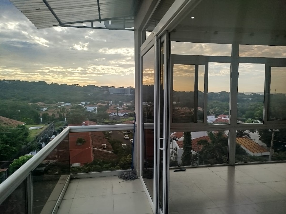 Rento hermoso y amplio apartamento con excelente vista, cerca del mall más importante de Managua, Galería Santo Domingo. Son dos habitaciones con baño independiente, cocina, laundry, sala, comedor, balcón, baño de visita, todos los espacios están completamentamente climatizados.