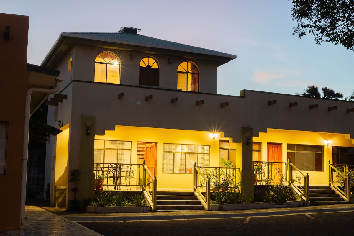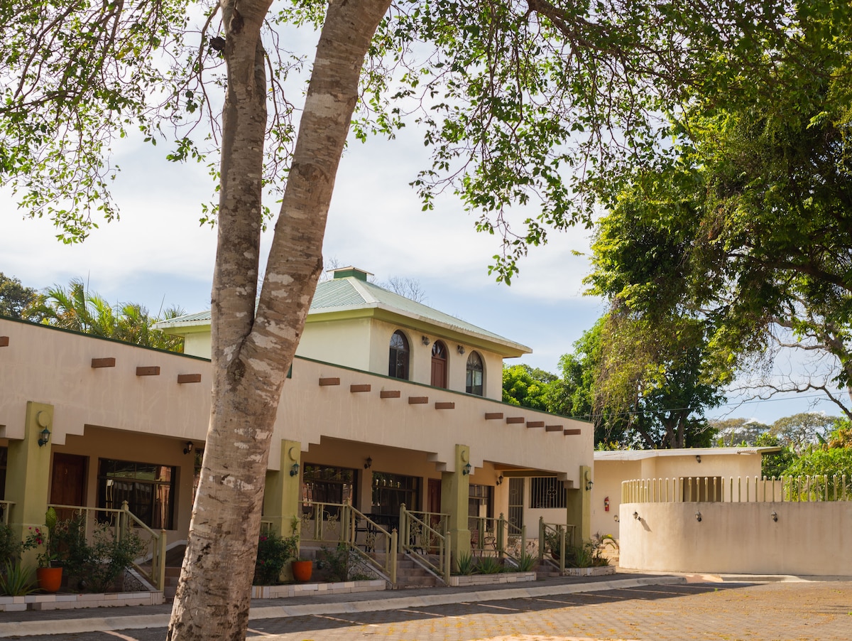 Stay at a charming family friendly hotel in the peaceful Reparto San Juan, Managua. Located in a safe, walkable area, it’s just steps from Metrocentro Mall, unique shops in Los Robles, Corona Plaza, parks, restaurants, and bars in the Zona Hippos. Enjoy a dip in the pool, spacious air-conditioned rooms, and 24-hour reception with multilingual staff. Free continental breakfast and coffee are available