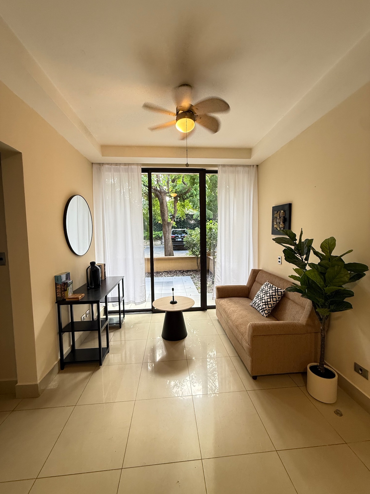 This apartment is located in Santo Domingo, the most exclusive place in Managua. It is a small new house in an enclosed property with the main house (owners) and another new apartment. This apartment is a one large bedroom with a queen bed, a separate kitchen, and a bathroom. It has a terrace, a garden and a shared big swimming pool. The kitchen is fully equipped, also 4K TV, Air Conditioner, ceiling fan, private parking. There are plenty of restaurants under 5 minutes' drive.