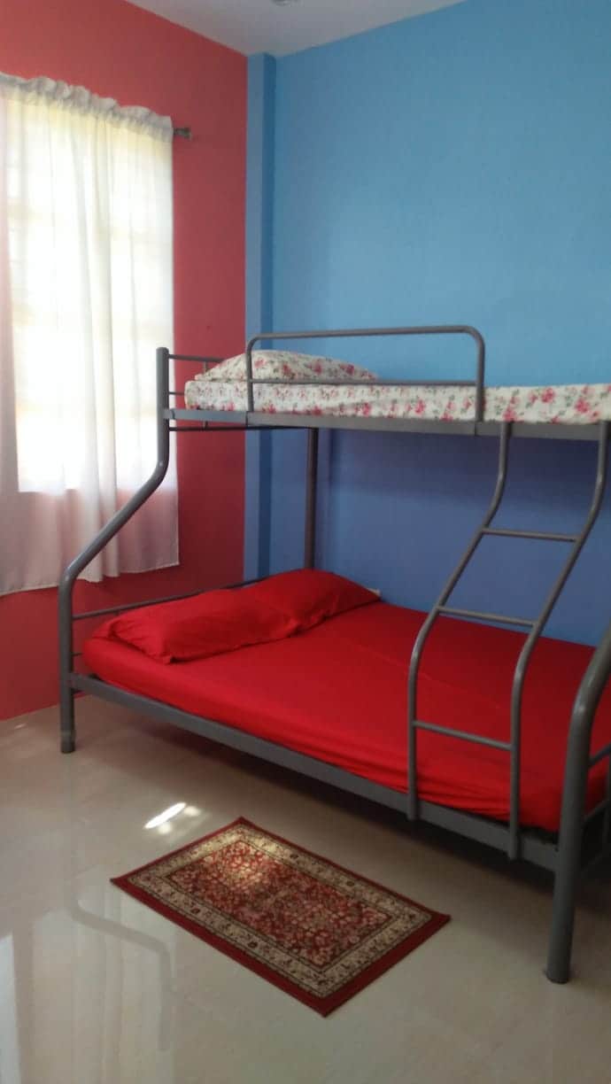 The place is private Beautiful House with 4 comfortable bedrooms.. This is located along the main road with easy access to the market, bus terminal, church, local government center. 5-10 mins drive or 20 mins walk to Butanding Interaction Center. This Family room (Room 3) is an airconditioned room with Bunkbed and electric fan,, that can accommodate up to 5 by adding extra bed with an additional charge , 1 children below 7 years old sharing bed with parent is free of charge.