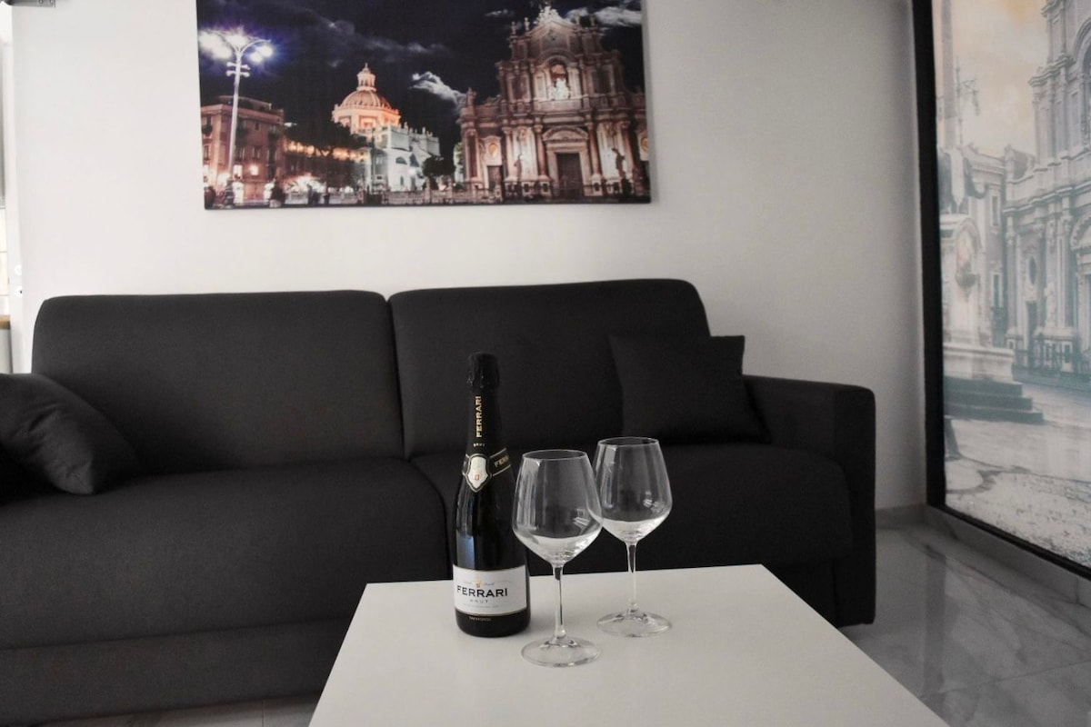 Appartamento di charme all'interno di uno dei palazzi nobiliari più prestigiosi di Catania, Palazzo del Toscano, sito nelle centralissime via Etnea e piazza Stesicoro. Il palazzo si trova a pochi passi dai maggiori siti di interesse storico della città. Sotto casa si trovano metro, bus, taxi. La casa, di circa 120 mq, é elegantemente arredata con mobili antichi e oggetti tipici siciliani ed è dotata di tutti i confort. Luogo ideale per girare la città ma anche per godere della movida catanese.