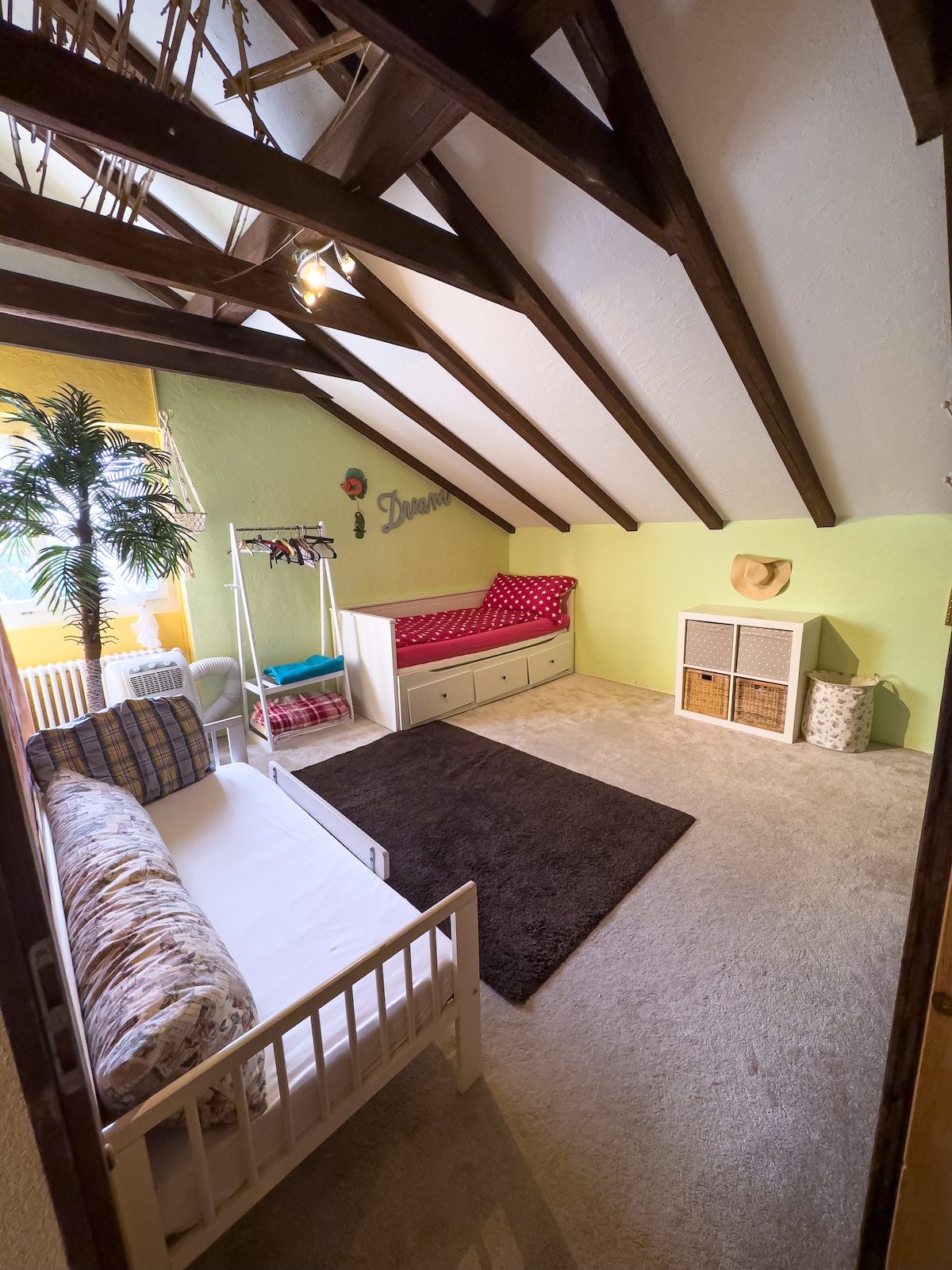 This cozy loft is located in the scenic tourism triangle of Zürich, Lucerne, and Zug – all three destinations are reachable by car in under 30 minutes. Nearby highlights are the Türlersee lake and the beautiful Seleger Moor flower park. Loft has a washing machine, a dishwasher, a Nespresso coffee machine, a small balcony and a lovely garden dining area under the trees – perfect for a relaxed evening meal. The loft is ideal for 2 guests, an extra bed can be provided for free upon request.