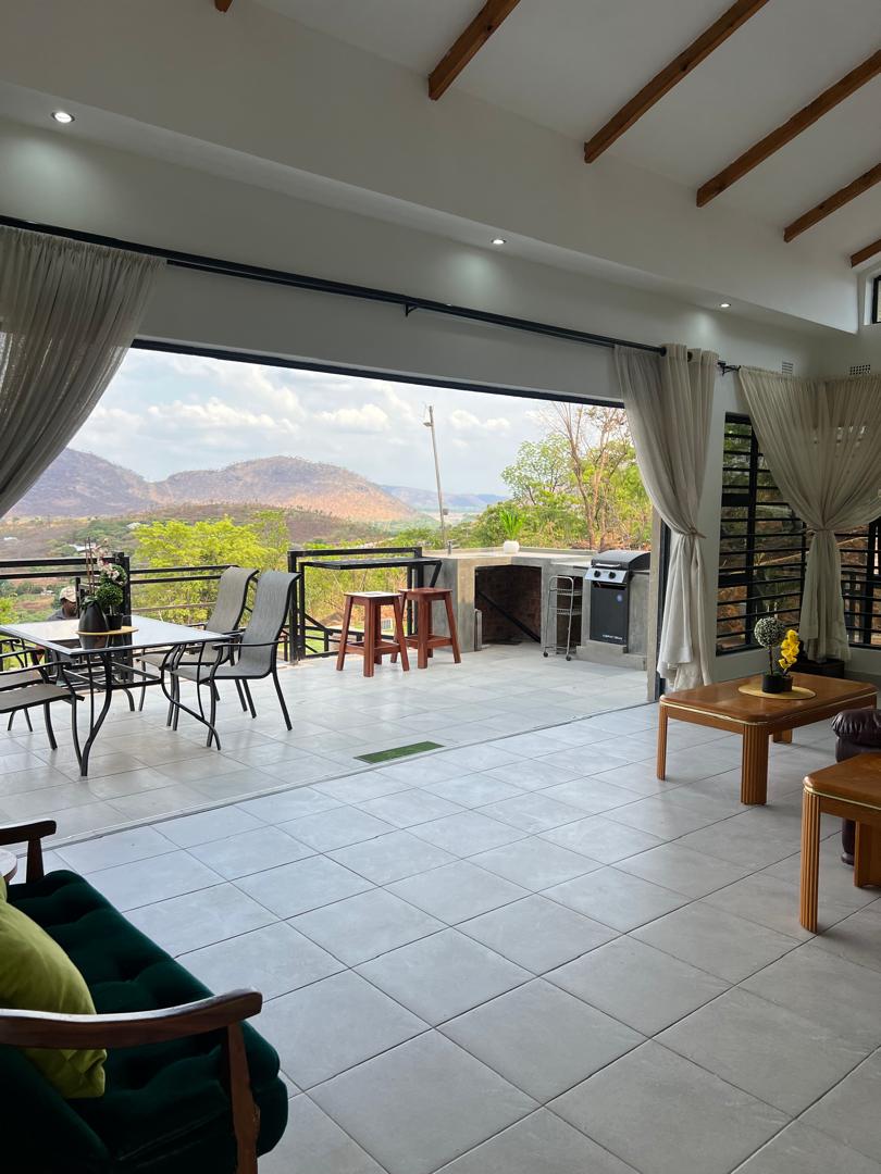 Escape the busy world to this unique and tranquil hilltop getaway, overlooking scenic valley views with orange plantations, wheat fields and Mazowe dam in the distance. Enjoy the landscaped gardens, mountain breeze and peaceful evenings with star lit skies. Equiped with solar and borehole for your comfort and an outdoor patio grill and garden firepit. 5 minute drive downhill to access Mazowe dam if you wish to enjoy other public water activies. Hillview Mazowe - we look forward to hosting you!