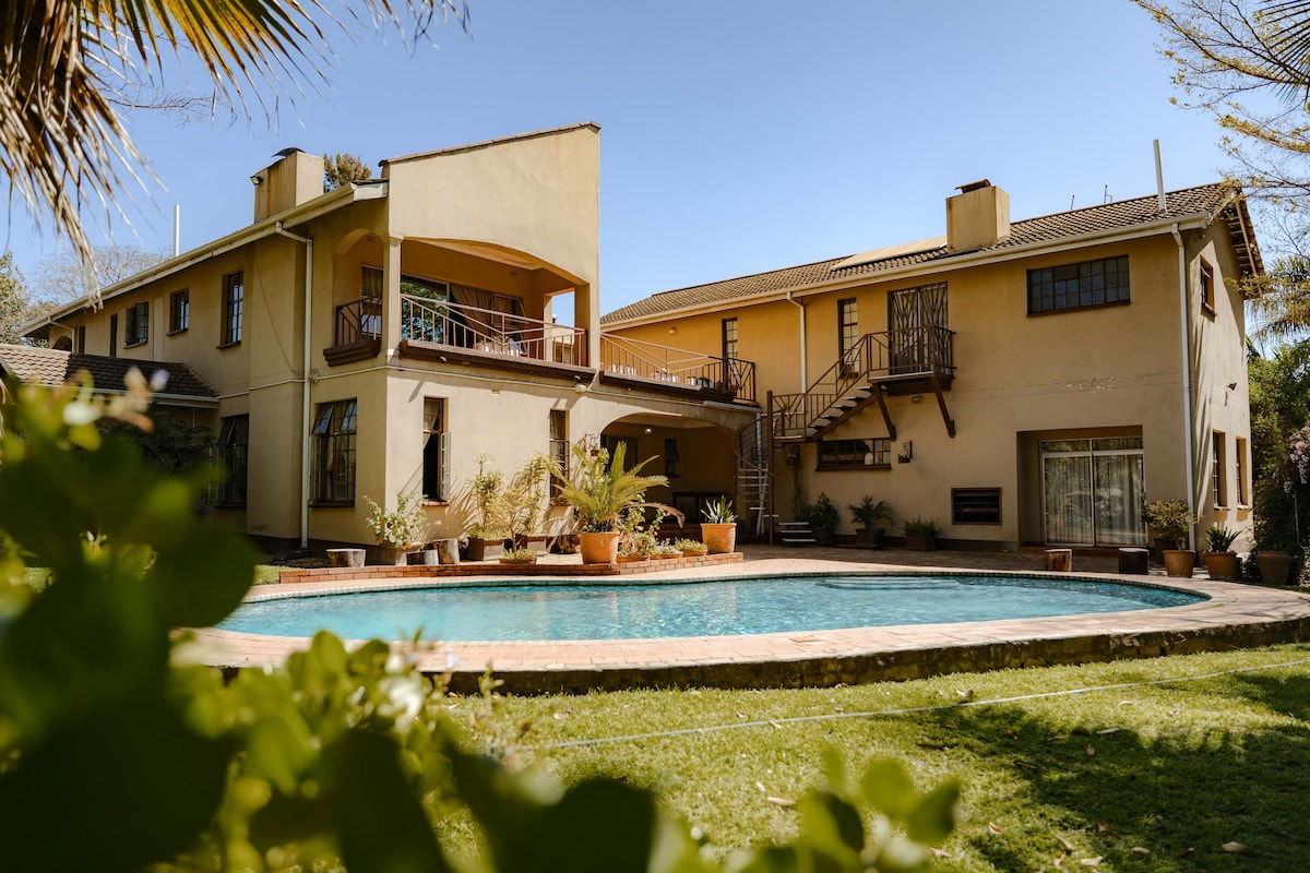 This Four-bedroom, four-bathroom apartment with a pool has been designed for comfort, convenience, and relaxation! Please note that we do not allow events or parties of any sort. Our house is perfect for families, business or similar groups. It is located in a complex of two units and a quiet neighbourhood so noise is not tolerated. With space for eight guests, this modern home has everything you'll need. Enjoy world-class restaurants in Borrowdale , or head to the new Highland Park Mall.