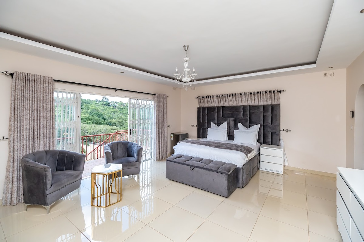 Our home is perfect for family and a group looking for fun, entertainment, tranquility and breathtaking views! This property boasts a pizza area, fire pit, pool house, sauna, with a barbecue area, to ensure that you have a relaxed and good time. Enjoy the theater for a movie night and comfortable beds and bedrooms. To ensure your experience remains tranquil and enjoyable, the property comes with a Back up generator, solar energy, a borehole, Wi-Fi, a chef, cleaner and handyman.