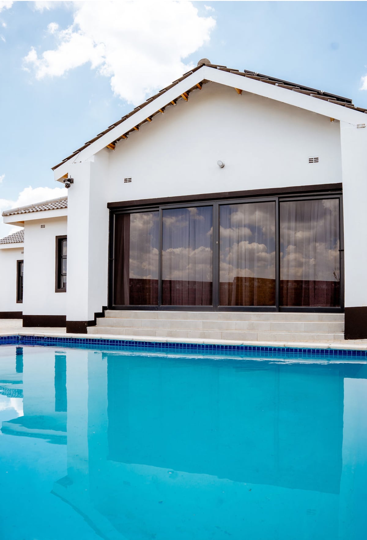 This Four-bedroom, four-bathroom apartment with a pool has been designed for comfort, convenience, and relaxation! Please note that we do not allow events or parties of any sort. Our house is perfect for families, business or similar groups. It is located in a complex of two units and a quiet neighbourhood so noise is not tolerated. With space for eight guests, this modern home has everything you'll need. Enjoy world-class restaurants in Borrowdale , or head to the new Highland Park Mall.