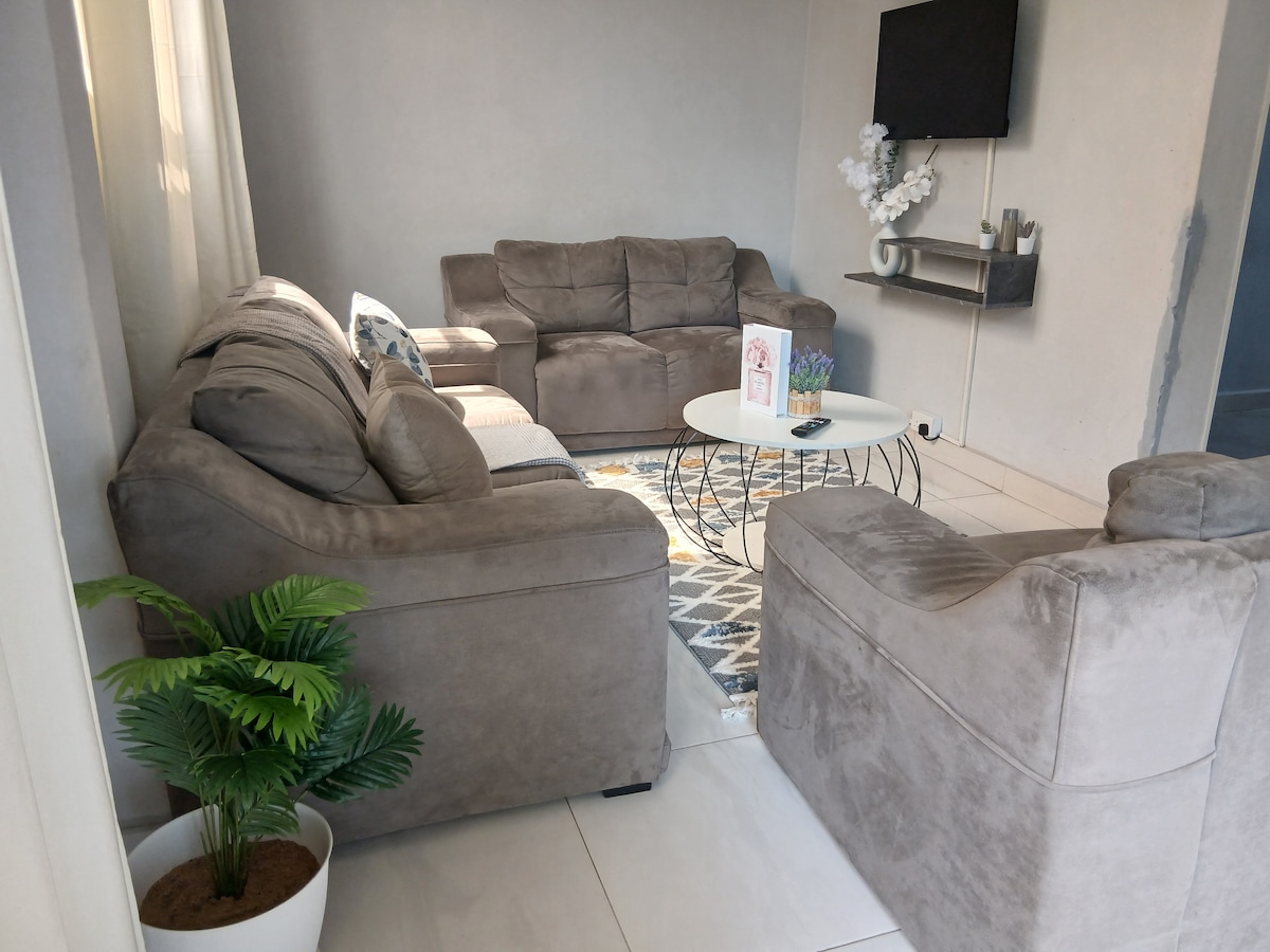 This luxury two bedroom apartment is in a peaceful and safe location perfectly located for you and your family. It has modern amenities with additional offerings: Gated Estate with 24 hours security. Main gate offers concierge service. Reliable water supply (borehole backup). Gas line that supplies cooking and hot water. Gas and electric stove as well as washer-dryer supplied Wifi (this will need top up if extra is needed) Built bbq area Within 100m there is: petrol station & supermarket