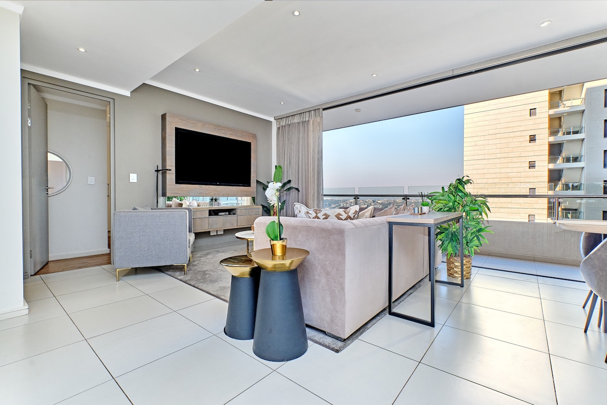 Gorgeous sunsets from this luxurious apartment on the 10th floor. Includes 2 bedrooms, a balcony, flat-screen TV, smeg equipped kitchen with a dishwasher + microwave, washing machine, 2 bathrooms with a shower (and one bath) and guest toilet. Includes a full backup power system! Masingita features an outdoor pool and the property is home to the renowned restaurant Bowl'd, which also provides a bar. Masingita is situated just a stone throw away from the Gautrain and 3.2km from Sandton City Mall.