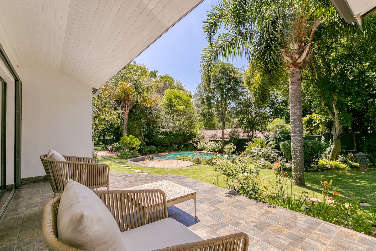 PRIVATE || SECURE || SERENE LUXURY The moment you arrive you will begin to relax. Sun filled, light and airy our home is stylish & graceful yet informal and welcoming. Enjoy breakfasts, brunches or afternoon barbecues with a sundowner on the patio taking in the sparkling pool & garden. Sumptuous luxury offers you spacious bedrooms all unsuite, a vast kitchen & endless entertainment areas. Styled with care, serviced with love and prepared with all you need to make your stay an absolute pleasure!
