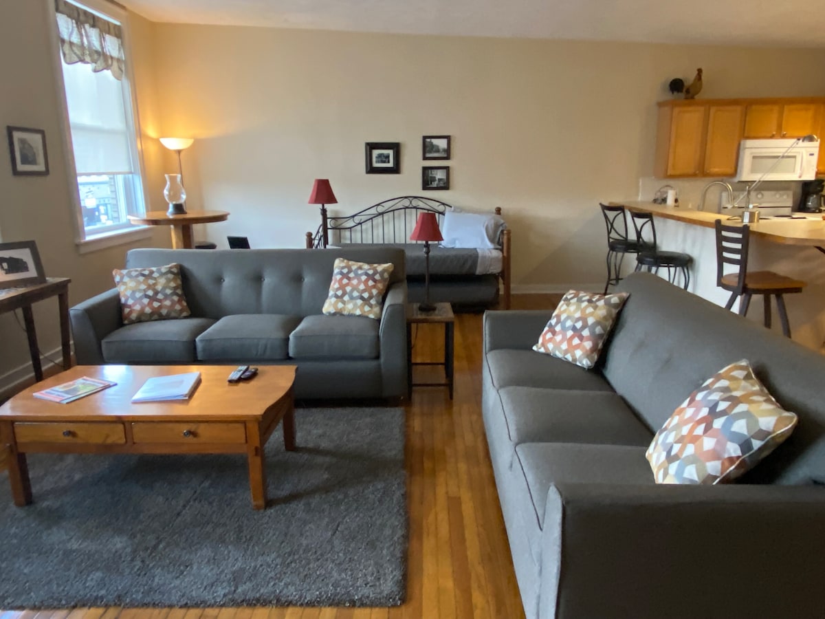 Your spacious home away from home is located in the heart of downtown Ludington and a short walk from the beach; late nineteenth century bones; modern utilities; is beautifully furnished & decorated. You'll be surrounded by shopping boutiques, entertainment, and eateries; yet secluded above it all. This rental has vast ceilings and natural light; gorgeous woodwork; clawfoot tub; excellent climate control; comfortable queen bed; large TV & high-speed internet. The pictures don’t do it justice ✨