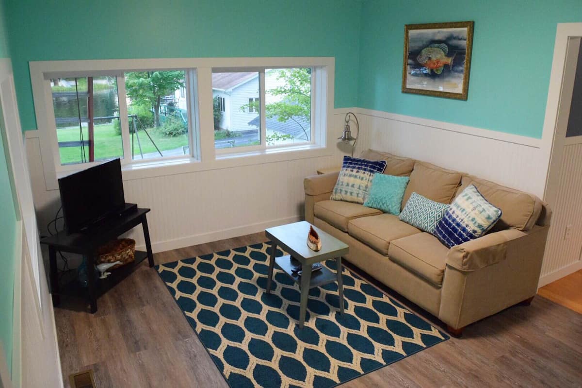 The Goldfish! Modern waterfront apartment is 1 of 4 at The Blue Bayou Marina & Resort. Relax in this peaceful, quiet setting. Modern amenities, comfortable furnishings & open concept. Located minutes from the beach & downtown. Private deck overlooking the Bayou, fire pits, grill, hammocks & lawn games are shared with all guests. Prime fishing location! Boat slips available to rent based on availability & boat size. Inquire in advance for rates & reservation. Pontoon rental available, seats 8.