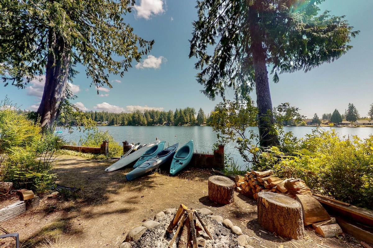 Nestled in Allyn, WA, this 5-bedroom, 3-bath vacation rental house invites you to experience the best of the Pacific Northwest. With a private beach and a deck with breathtaking views of Case Inlet, this getaway offers the perfect setting for relaxation. Take a boat out on Puget Sound, go hiking in the Olympic National Forest, or venture into Seattle for a taste of city life. Later, you can unwind with s’mores by the fire pit or a cozy evening by the pellet stove.
