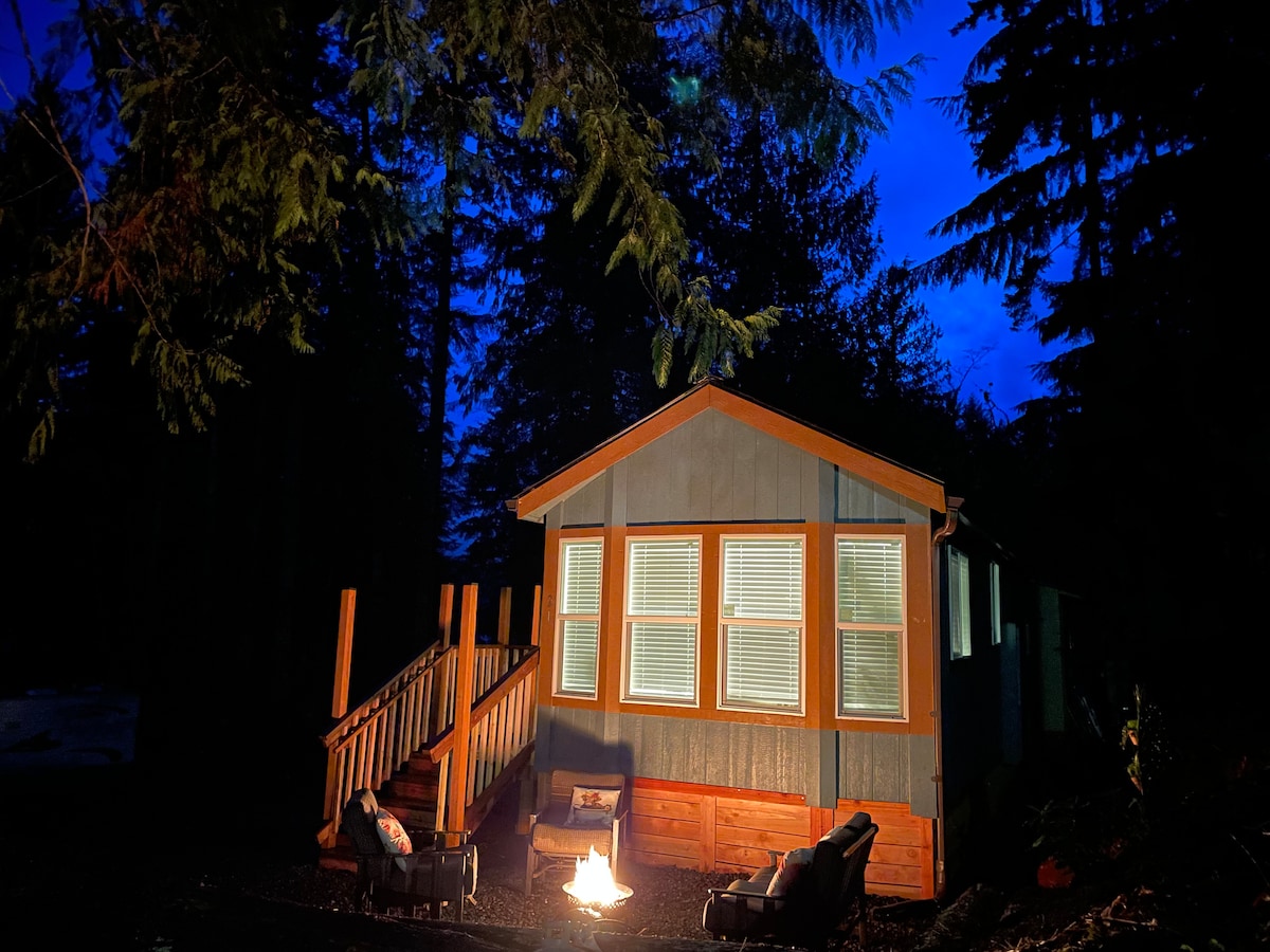 A well-deserved getaway, this Pet-friendly, luxurious, & cozy cabin is perfect for couples or small groups in search of a tranquil escape from city life. -- 90 min from Seattle, SeaTac Int. Airport, & Olympic Park entrance. Amenities Include: Hosts who welcome & care about all people 6-person Sauna & Hot Tub Stylish living space Luxurious linens 3 Comfy beds Fully equipped chef's kitchen Private deck w/furniture & Weber grill Game Rm w/Ping Pong, Darts & Smart TVs