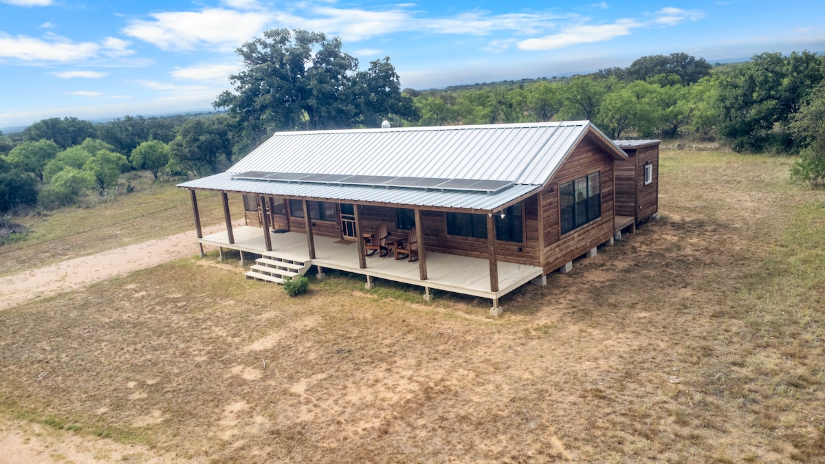 Enjoy hill country views on a working cattle ranch where wildlife roam free! Serenity Cabin combines rustic surroundings with modern comfort. Professionally cleaned & maintained. 4 full beds + sofa. Kitchenette with full refrigerator. Cedar Cabin on 40 Acres + Front Porch +Air Conditioning + Ceiling Fans + WIFI + A/C + Screen Porch + Smart TV + DVD+ Pavilion+ Comfy Beds + Seasonal Pond +Sunset Views! Castel - 10 min Mason - 20 min Llano - 20 Fredericksburg - 40 min Your cabin awaits!