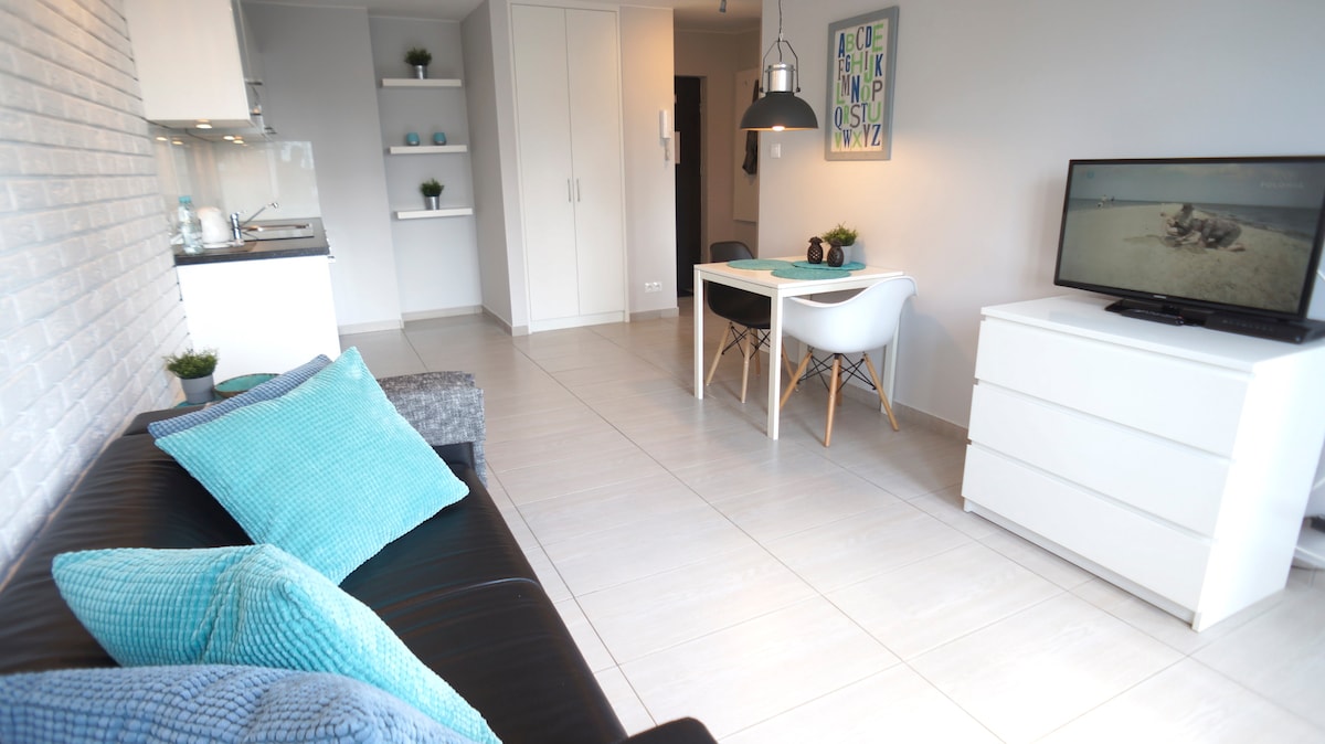Przytulny apartament zlokalizowany w centrum Warszawy, na cichej ulicy. Tuż obok tętniące życiem popularne restauracje, bary i kawiarnie. Idealny dla par oraz turystów biznesowych dzięki swojej centralnej lokalizacji. Dobrze zaprojektowana przestrzeń zapewnia komfortowy pobyt dla dwóch osób. Studio jest w pełni wyposażone: internet, TV, pralka, suszarka stojąca, ręczniki i szeroki wybór kosmetyków - wszystko dostępne dla Ciebie.