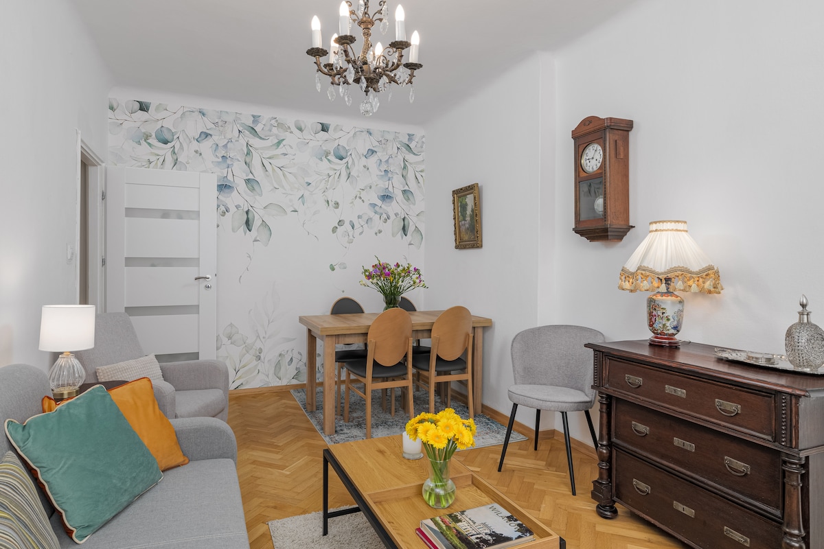 Freshly renovated one bedroom flat with lovely green views of a large interior garden and the spires of the famous Church of the Saviour. The perfect place to get the best of Warsaw - steps from the cafes, restaurants and bars of Plac Zbąwicela and the city’s elegant grand parks (Łazienki & Ujazdowski). Metro and direct bus to the airport around the corner. Super central and very quiet.
