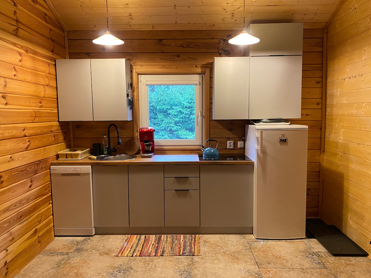 Domek przy lesie, z ogrodem, placem zabaw, miejscem do pracy biurowej i szybkim WiFi Mieszkanie 2-pokoje: Sypialnia:TV,2-os łóżko Kuchnia:lodówka,zmywarka,piekarnik,mikrofala,czajnik Salon:8-os stół,WiFi 60Mb/s Łazienka:prysznic,pralka Hol:szafy W wyższym standardzie: -ściany:kamień,stiuk -podłogi:żywica -blaty:kamień -nowe Agd - zdalne oświetlenie - ogrzewanie:nowy piec 2026r Do dypozycji -ogrodzony parking -ogród ławki hamaki huśtawki tyrolka -las -spokój, śpiew ptaków,karmianie wiewiór