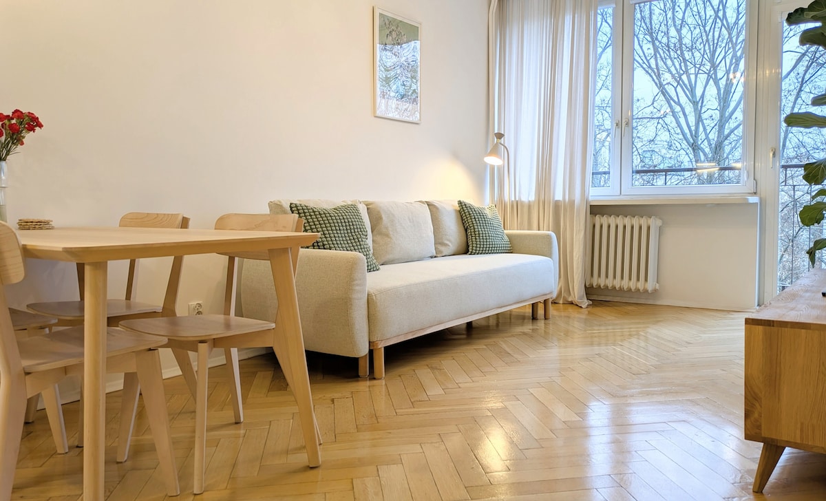 Our apartment is cozy, quiet and offers an intimate atmosphere. It is perfect as a starting point for exploring Warsaw due to its location. Close to the Old Town and the Royal Route, close to the Vistula Boulevards and the Copernicus Science Center, close to the National Stadium. All this within 1 bus or tram stop or within easy reach of your feet. The apartment has air conditioning and a terrace, where it is nice to eat breakfast in the morning and drink wine in the evening.